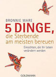 Ein Buch über das Leben. Was ist wirklich wichtig im Leben? Bronnie erzählt von Menschen, die kurz vor dem Tod sind und berichtet, was am Schluss unseres Lebens wirklich zählt. Es ist nicht das Bankkonto, noch wie viele Stunden wir im Büro verbracht haben, sondern Dinge, die das Leben lebenswert machen. Ein Buch das hilft unsere Prioritäten im Leben anders zu betrachten.